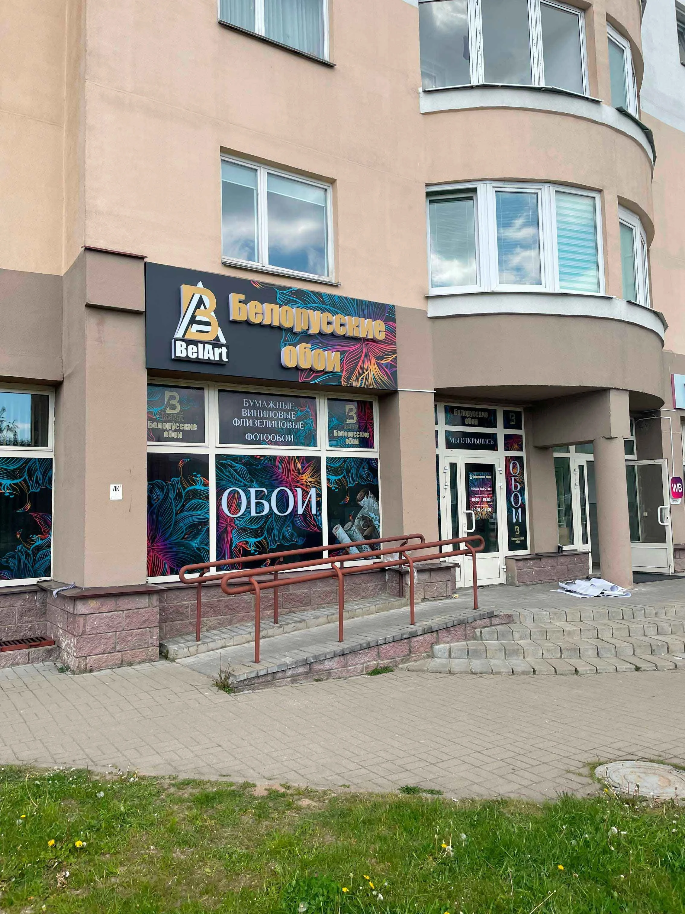 Or, for instance, what does an ordinary building with several businesses look like in almost every neighbourhood of Belarus’ capital? No doubt that the architecture of the building in which the small business is located plays an important part. Here, we are usually met with ‘off-the-shelf’ solutions: ventilated facades, panes of glass in ostentatious colours (for example, blue or gold), and an abundance of plastic. Predictably, against this far from attention-friendly backdrop, the bulky lettering of major online marketplaces and chain stores sprawls across the scene. At the same time, small businesses also try to make themselves visible, mounting signs, sometimes of considerable size, on building facades and using a variety of decorative elements, predominantly plastic, with a short lifespan. Most likely, they will be in the brightest and most varied colours, with each sign competing to draw attention to itself. They might be red, purple, white, green, or any other colour a business decides to go for. More often than not, the building itself disappears behind them. Signs from different eras coexist side by side, yet they fail to form a coherent whole: there is no sense of historical continuity, nor any city-level identity holding them together.